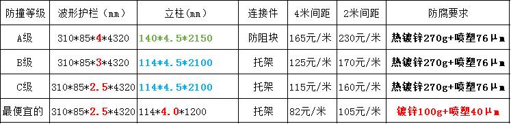 常用噴塑兩波形護(hù)欄規(guī)格參考價(jià):