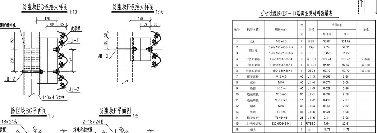 下面可參考三波形護欄BT端頭圖紙: