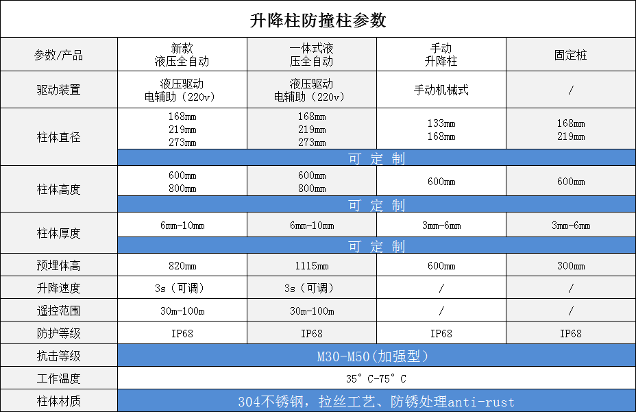 固定路樁從安裝方式區分為預埋式和地表式:預埋式的固定路樁會有100mm以上的延伸段留在地下,這樣安裝的固定路樁更堅固而且抗撞擊力也略勝一籌。
